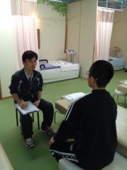 | 記入して頂いた問診表に基づき患者様の症状の確認を行います。ご不明な点等がありましたらご相談ください。 | ![]() |