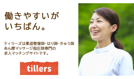 求人サイト「ティラーズ」は、柔道整復師、はり師、きゅう師、あん摩マッサージ指圧師専門の登録制求人マッチングサイトです。会員の皆さまには会員特別紹介手数料でご利用頂けます。