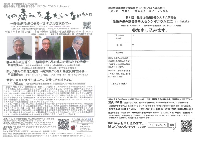 今般、NPO法人ペイン・ヘルスケア・ネットワーク【協力】によるシンポジウムが2025年1月18日(土)に開催されます。ご興味のある方はこちらからお申込み下さい。